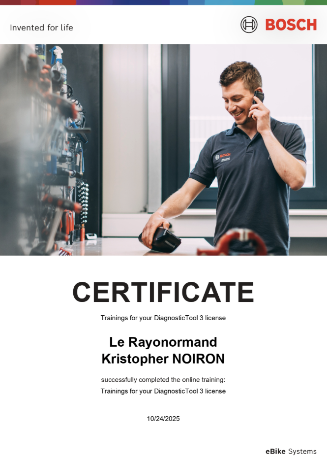 Vous avez un vélo électrique ? Pas de soucis : le Rayonormand est certifié réparateur BOSCH eBIKE.